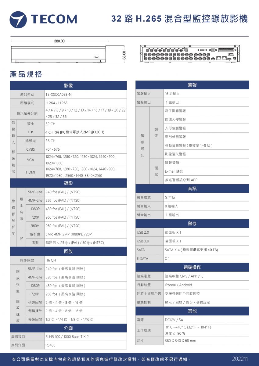 32路混合型監控錄影主機(4 HDD)-【TE-XSC0A058-N】