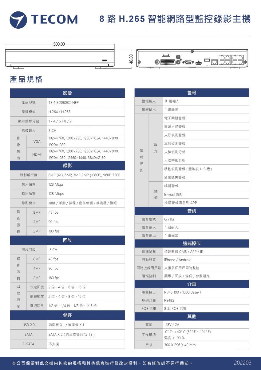8路網路型監控錄影主機(雙硬碟)【TE-NSD08082-NFP】