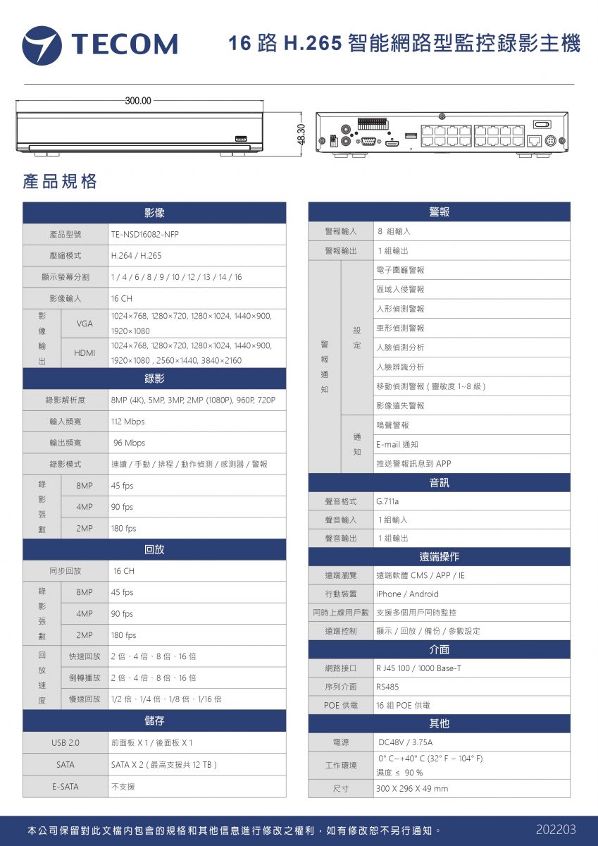16路網路型監控錄影主機(雙硬碟)【TE-NSD16082-NFP】